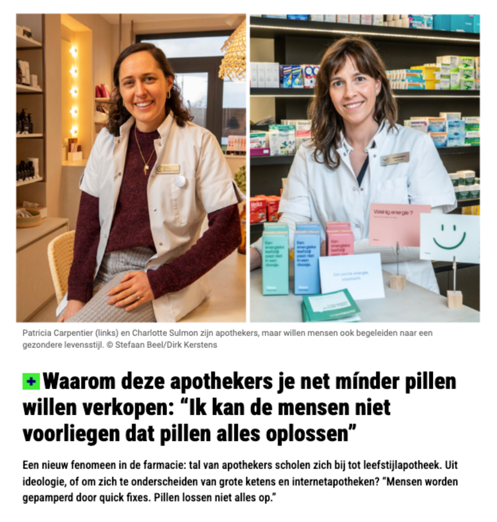 In een artikel van Het Nieuwsblad vertellen Charlotte Sulmon van Apotheek Charlotte Sulmon en Patricia Carpentier van Apotheek Carpentier hoe zij samen met Yoboo inzetten op een nieuwe rol voor de apotheker: die van leefstijlapotheker.